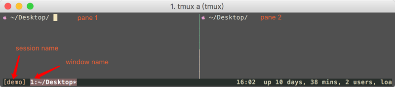 一个window又可以包含多个pane(面板),窗口下的面板,都处于同一界面下,这些面板适合运行相关性高的任务,以便同时观察到它们的运行情况。